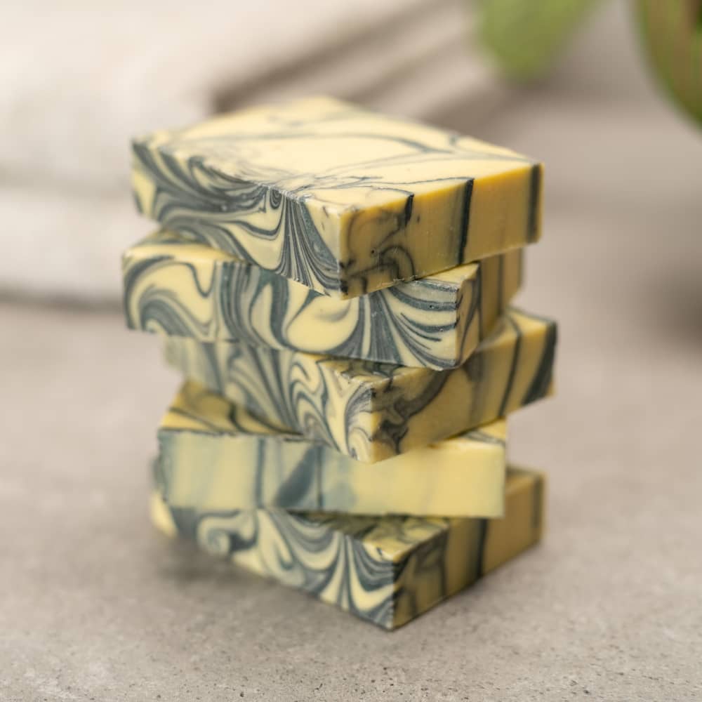 Unsere Seife "Dag" ist ein echter Eyecatcher, creme- bis safranfarben, durchzogen mit einem grau-glitzernden Swirl, riecht wunderbar blumig - und pflegt die Haut auf ganz natürliche Weise mit hochwertigen Ölen.