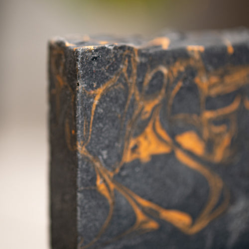 Cool, edgy aber irgendwie auch elegant, fast schwarz, individuell durchzogen mit einem kupfer-glitzernden Swirl oder Marmorierung – was für ein Look! Sie riecht wunderbar nach Macadamia und Vanille - und pflegt die Haut auf ganz natürliche Weise mit hochwertigen Ölen.